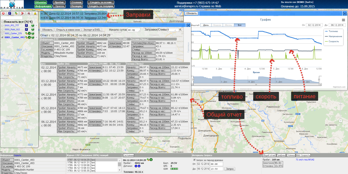 - «Пробег» - Пробег на начало, конец дня, и общий пробег за день, а так же максимальная скорость за день.