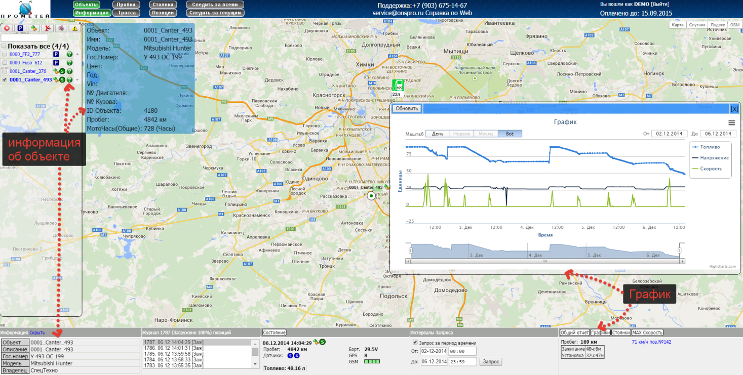 «Журнал» - Загруженные позиции за выбранный период времени данного ТС